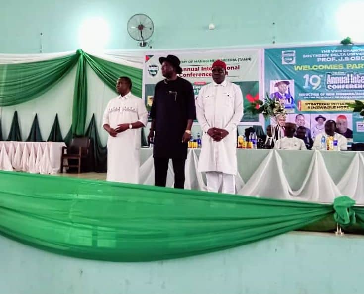 Other commisioners inducted during the 19th Annual International Conference/AGM at the Southern Delta University, Ozoro, on Wednesday by The Academy of Management Nigeria (TAMN) were the Commissioner for Higher Education, Prof. Nyerhovwo Tonukari and his counterpart in the Ministry of Finance in the state, Sir Fidelis Tilije.