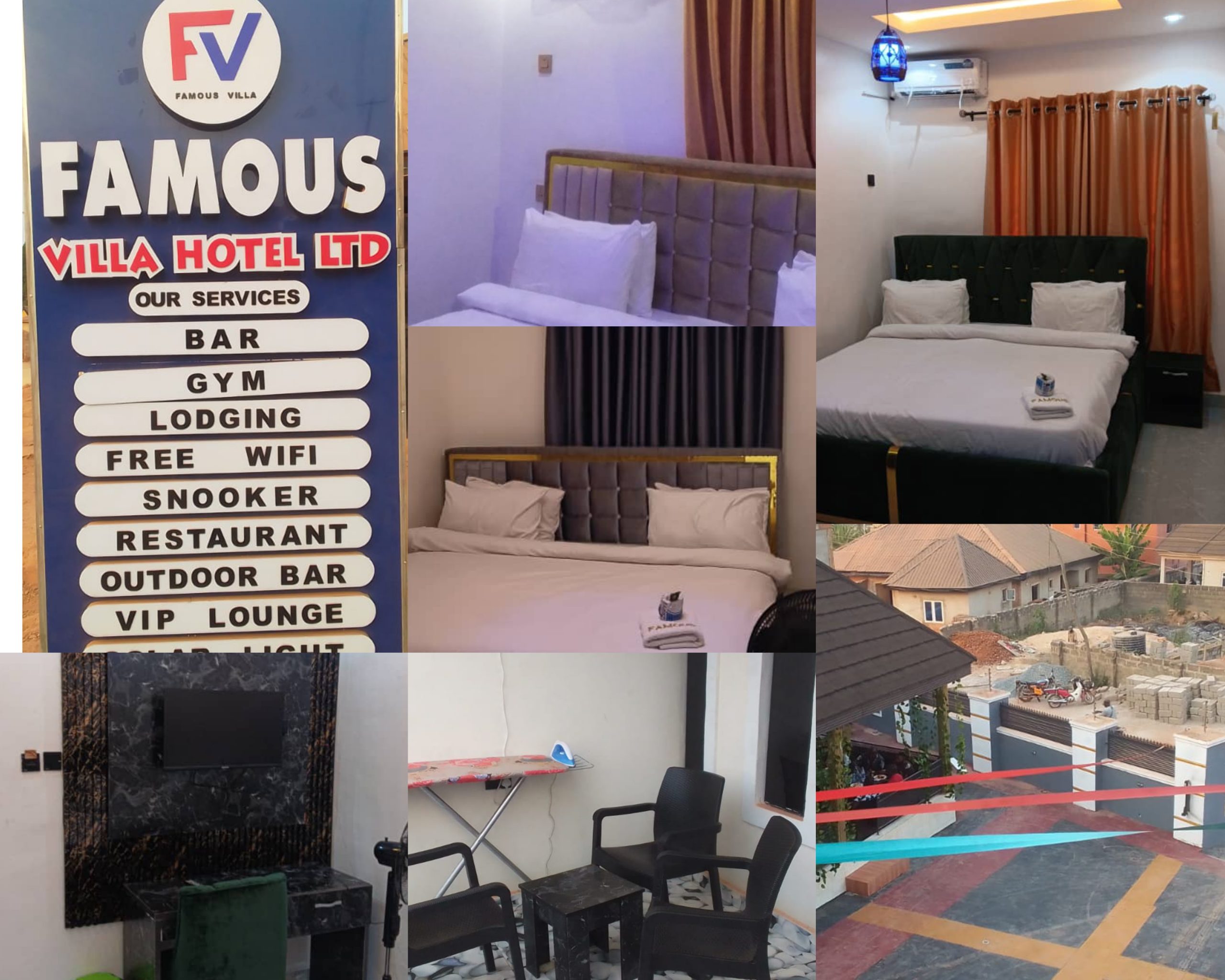 For lodging and accommodations as well as and other services we offer , visit Famous Villa Hotels at Stephen Onwusah street, Amachai Quarters, Okpanam in Oshimili North Local Government Area or call GSM number:09034954746 for enquires.