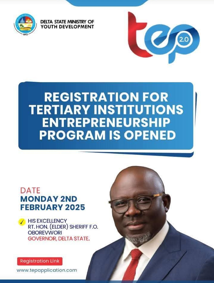 The Delta State Government has announced the commencement of registration for the Tertiary Institutions Entrepreneurship Programme (TEP), a youth-focused initiative designed to promote innovation, entrepreneurship and economic empowerment among students of state-owned tertiary institutions.